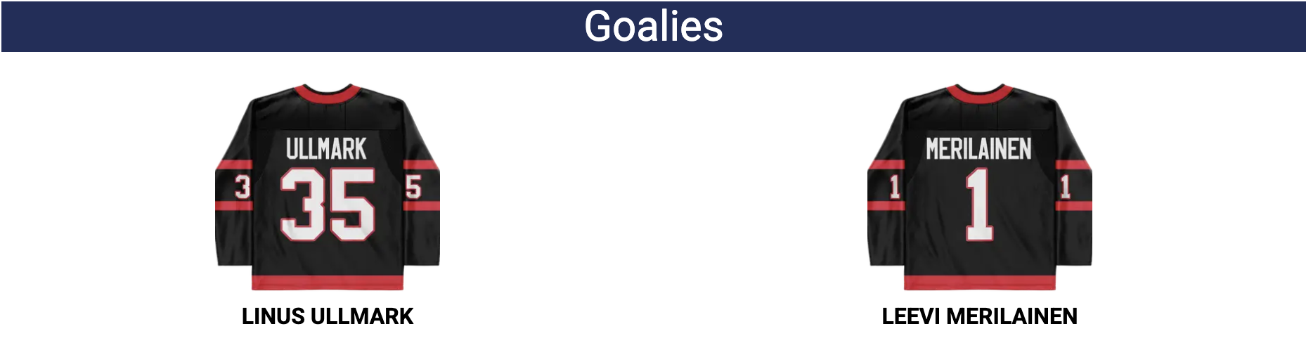 Také trenérský personál Senators již oznámil, na kterého ze svých gólmanů dnes vsadí. Do brankoviště Ottawy se proti Flyers postaví jednička Sens Linus Ullmark. Zkušený švédský gólman odchytal v letošním ročníku 6 zápasů s úspěšností zákroků 85.4% a průměrem 3.80 gólu na zápas. Záda by měl Ullmarkovi krýt jeho finský kolega Leevi Meriläinen.